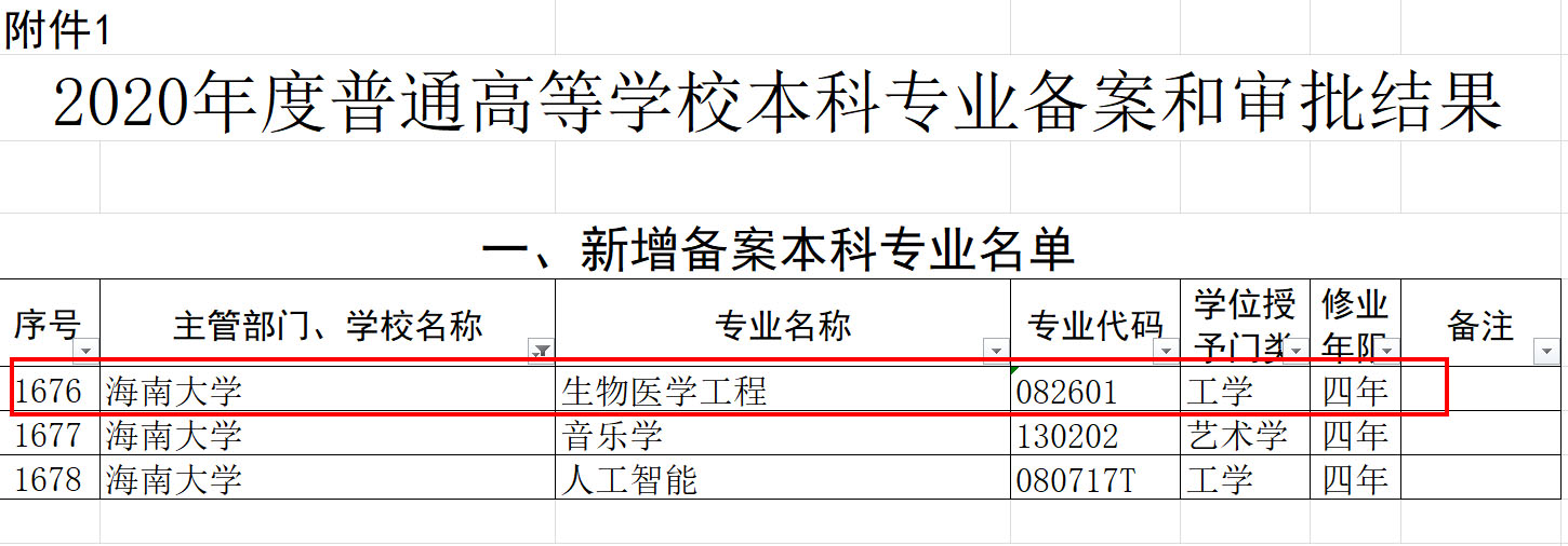 日前,教育部发布《教育部关于公布2020年度普通高等学校本科专业备案和审批结果的通知》(教高函〔2021〕1号),我院申报的生物医学工程本科专业(专业代码:082601)获教育部批准备案。