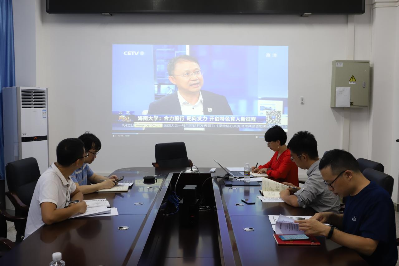 会上,中心组成员观看了中国教育电视台《育见》栏目《海南大学:合力前行 靶向发力 开创特色育人新征程》。采访中,骆清铭校长介绍海南大学依托海南区位优势和“三区一中心”战略定位,突出“热带、海洋、旅游、特区”四大特色,以牵头学科加配合学科形成学科群的模式,三年来教学质量提升,工作机制优化,内外交流水平提升,学校实现跨越式发展。未来科学谋划“十四五”,更好的服务国家战略需求和海南自贸港建设。