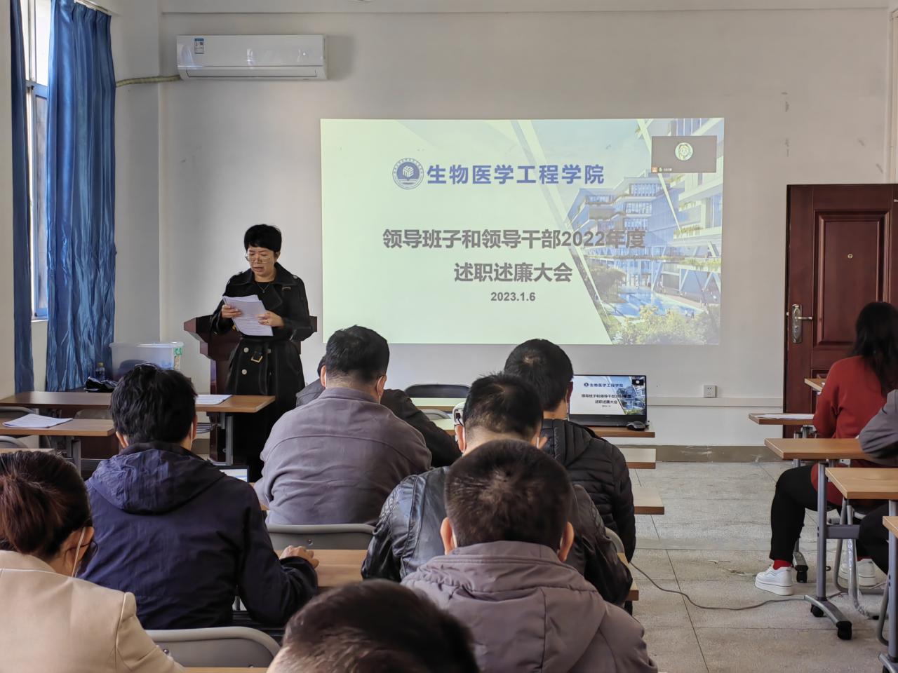 之后,刘谦院长代表领导班子做2022年度学院工作总结报告,向大会报告领导班子党风廉政建设责任、学院的建设和发展工作中的亮点、不足与改进等。并做个人述职述廉报告。