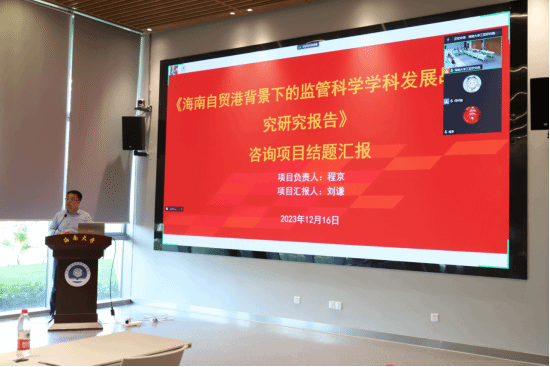 2023年12月17日下午,中国工程科技发展战略海南研究院重点咨询项目“海南自贸港背景下的监管科学学科发展战略研究”结题验收会在yl9193永利官网大楼B103学术会议室召开。中国科学院院士、中科院精测院研究员、海南大学荣誉教授叶朝辉,中国科学院院士、海南大学校长骆清铭,中国工程院院士、清华大学教授程京,博鳌乐城国际医疗旅游先行区管理局副局长符祝,海南大学党委常委、副校长刘谦,浙江大学教授段会龙,东南大学生物科学与医学工程学院院长、教授顾忠泽,桂林电子科技大学电子工程与自动化学院院长、教授陈真诚,华中科技大学苏州脑空间信息研究院院长李鹏程,广州医科大学9193官网副院长、教授谢国喜等专家学者和海南大学相关学院领导等20余人出席会议。验收会由刘谦副校长主持。