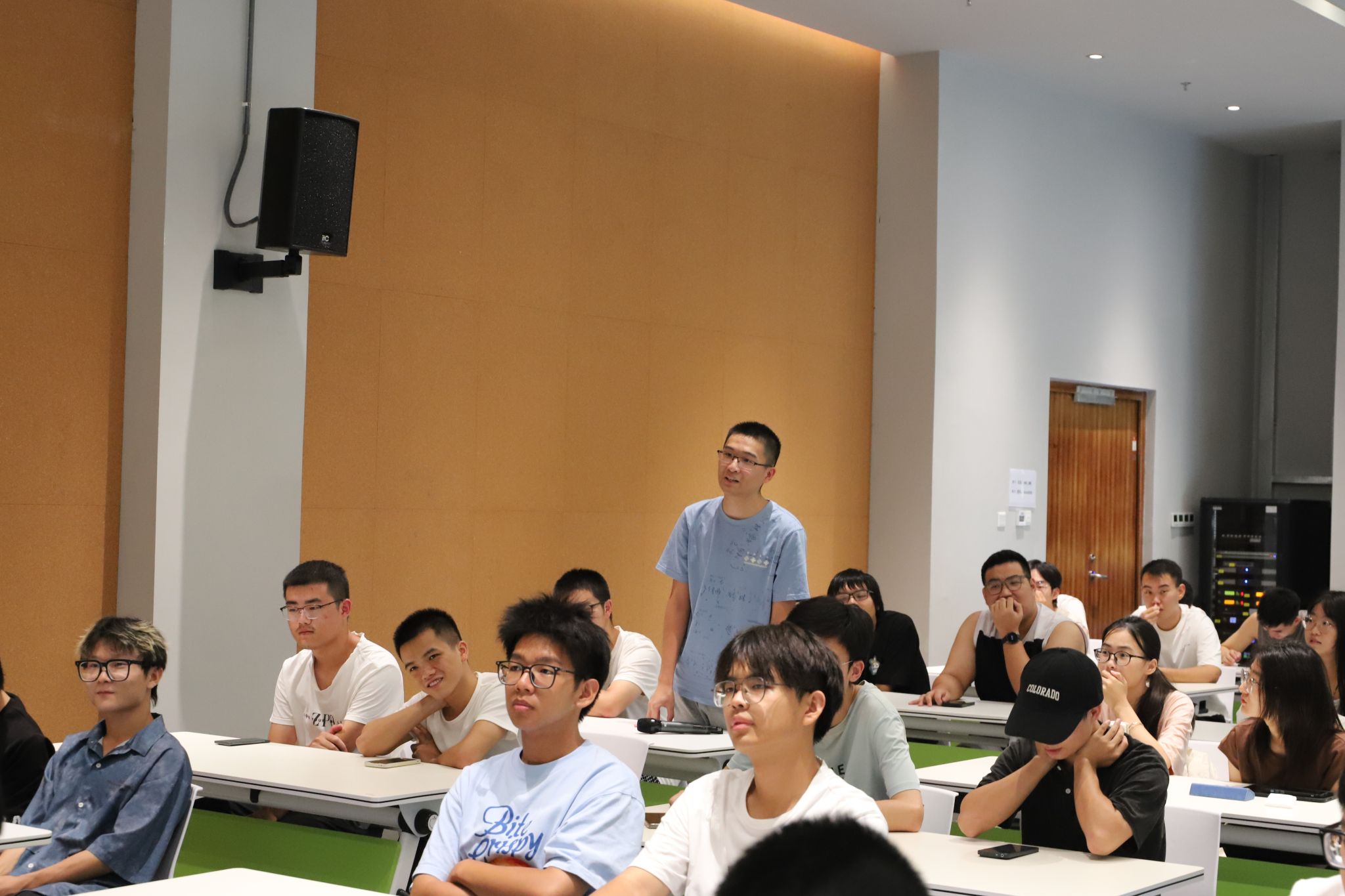 2024年7月,2022级本科生已搬迁至崖州湾科技城。为帮助同学们尽快适应新的学习生活,9193官网于9月3日在学院大楼B103举行了2022级本科生见面会,学院党总支书记张云竹、副院长余乐俊(1班班主任)、王亚龙副教授(2班班主任)、2022级全体同学参加会议。见面会由张云竹书记主持。