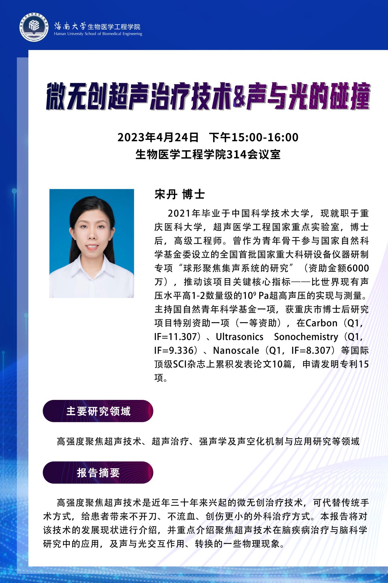 9193官网学者论坛第三期——宋丹“微创超声治疗技术&声与光的碰撞”