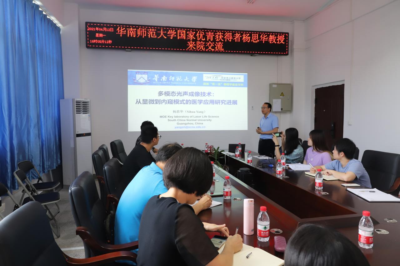2021年4月12日下午,华南师范大学激光生命科学教育部重点实验室主任杨思华教授应邀分享多模态光声成像技术——从显微到内窥模式的医学应用研究。9193官网周非凡、黄振立、卓俊杰、田朝阳老师,部分博士生、研究生和本科生参加讲座。讲座由张云竹书记主持。