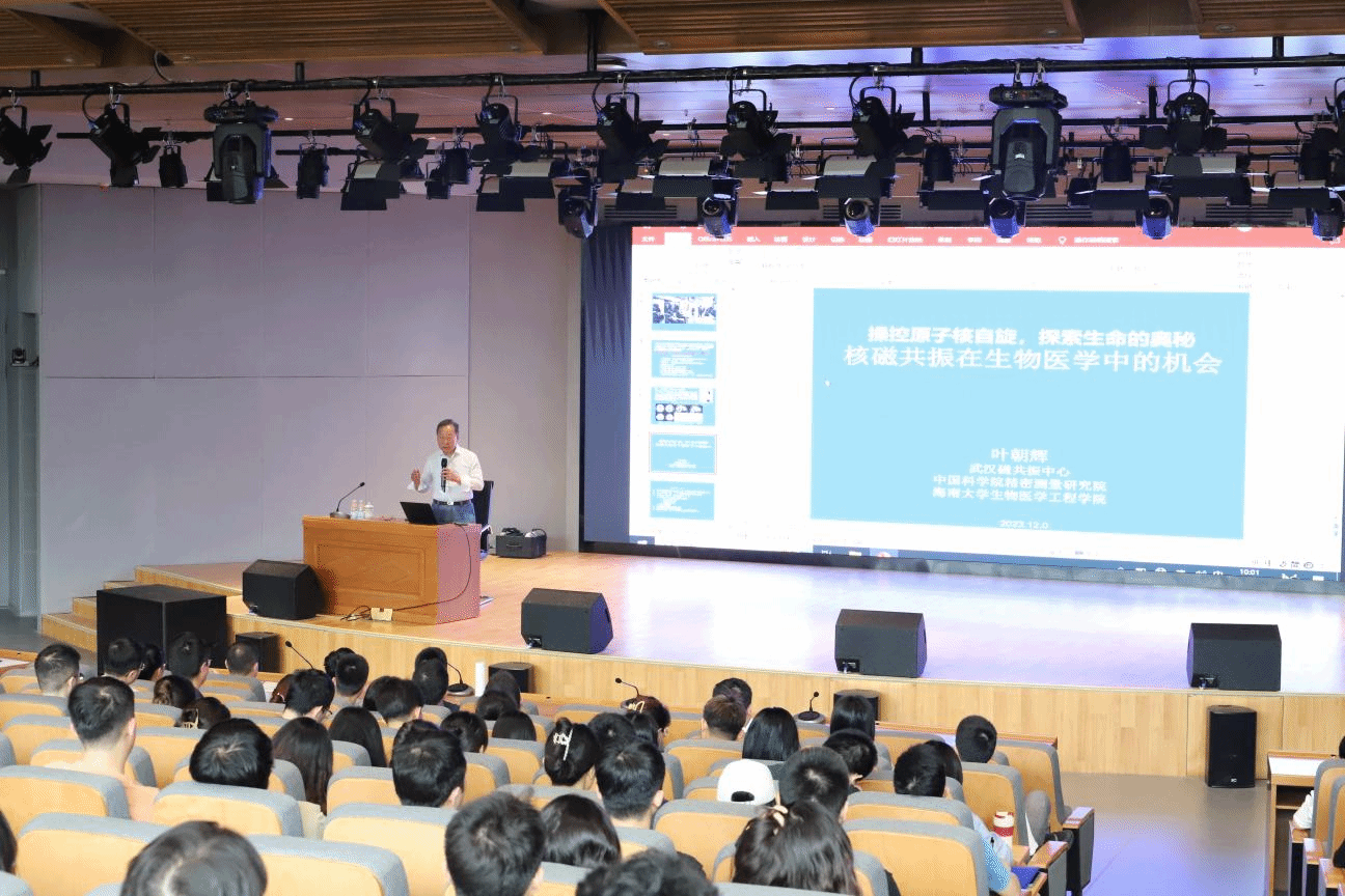 2023年12月6日,中国科学院院士、中国科学院武汉物理与数学研究所研究员叶朝辉应邀为yl9193永利官网师生开展题为“操控原子核自旋,探索生命的奥秘--核磁共振在生物医学中的机会”的学术讲座。讲座在9193官网B104大会议室举行,由yl9193永利官网周非凡副院长主持,约200名师生参加。