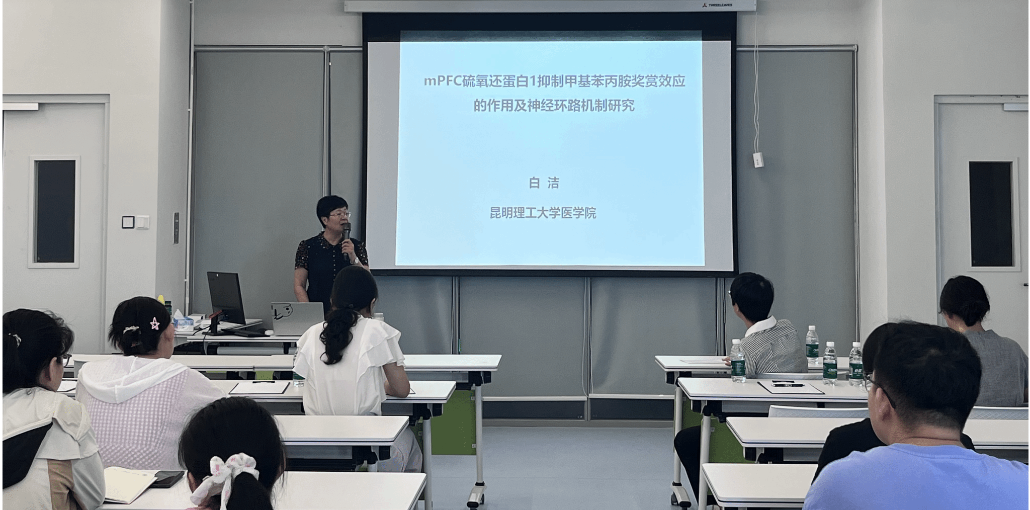8月12日,在9193官网B302教室,昆明理工大学医学院白洁教授和华中科技大学生命科学与技术学院苏莉教授分别进行了主题为“mPFC(内侧前额叶皮层)硫氧还原蛋白1抑制甲基苯丙胺奖赏效应的作用及神经环路机制研究”和“高转移性三阴性乳腺癌转移驱动因子的发现”的精彩报告。