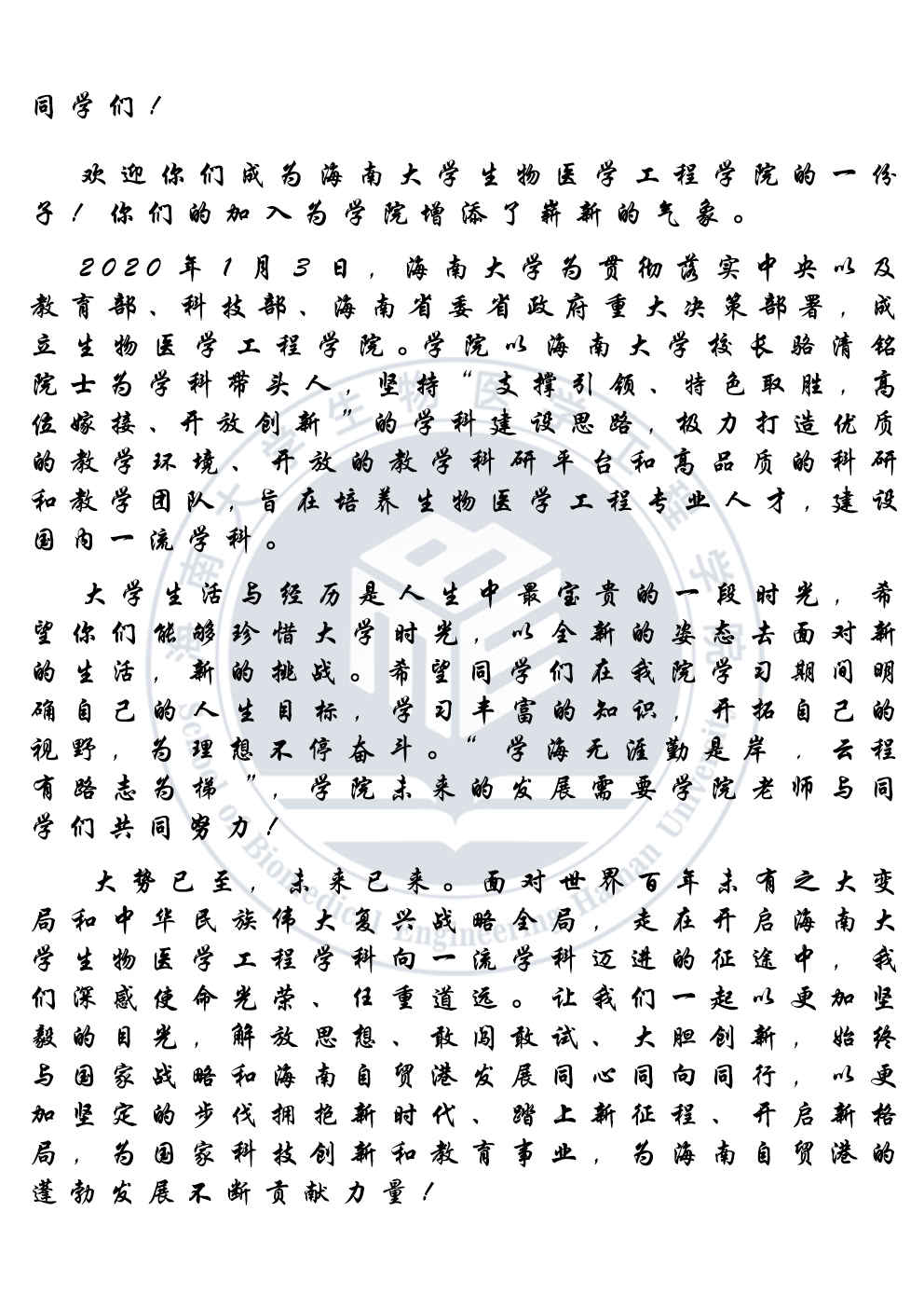 院长寄语